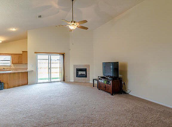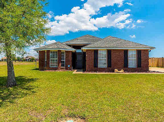 Cathedral ceilings throughout the living area, great open floor plan, bay window, fireplace, kitchen bar area, large master bedroom and closet. Master bath has shower and garden tub. Two car garage. Fenced-in back yard. New roof in 2019. screened rear porch and metal roof added to patio. New flooring 2018.
