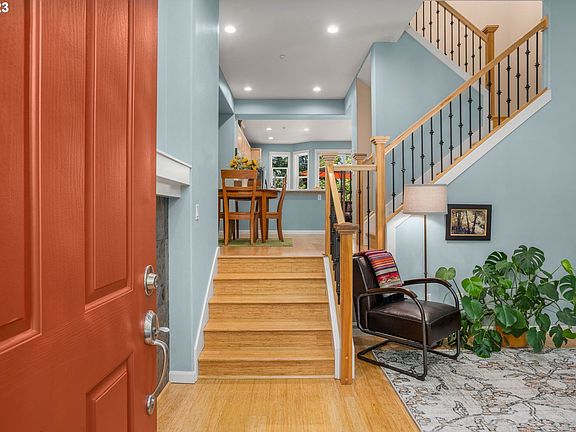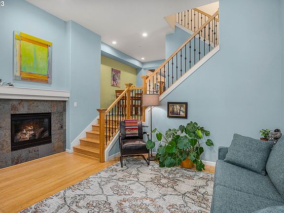 Introducing a charming, quiet and private Trolley Barn townhome in the highly sought-after Sellwood neighborhood. Exceptional property with an enviable location situated near the back of the community. Admire this well maintained home with updates, featuring high ceilings, bamboo floors, new carpet and a gas fireplace. The stunning and well-equipped kitchen is a chef's dream, featuring stylish Quartz countertops, sleek stainless steel appliances, a generous eating island and nook/sitting area, perfect for enjoying your morning coffee. Wonderful deck off the kitchen, great for entertaining family and friends on those warm summer nights. Flexible floor plan with 3 bedrooms upstairs including the primary suite and a fantastic office/media room on the lower level that has an exterior entrance. 2 car attached garage. Excellent Sellwood location with close proximity to tasty restaurants, fun shops, delicious coffee, New Seasons, beautiful parks and the Springwater Corridor! [Home Energy Score = 8. HES Report at https://rpt.greenbuildingregistry.com/hes/OR10219581]