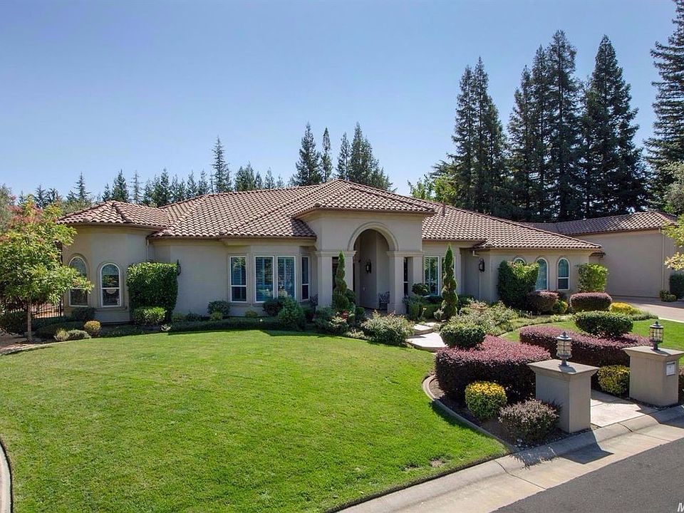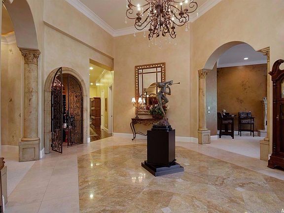 Luxurious sprawling single-story Mediterranean estate on 1.1 acres! Mature Bushnell landscaping influenced by 7+ acres of open space w/1,088 SF guest house, 5-car garage plus RV garage (total of 2,244 SF). Soaring ceilings, crown molding, extensive use of stone/marble, gold-leaf paint, custom cabinets, granite, gated wine room, chef's kitchen w/bar, 5 fireplaces, 900+ SF loggia w/fireplace & outdoor kitchen, putting green, salt-water solar-heated pool & spa w/heated outdoor shower & waterfall.