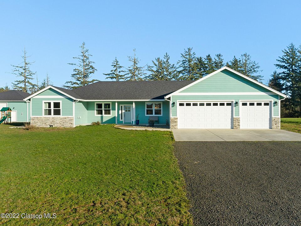 Beach dreams really do come true! This better than new custom home sits on 2.08 acres close to the beach with a 40X50 shop. Highlighted by quality finishes throughout including smart appliances, quartz & granite counters, laminate floors, tall ceilings, a large, covered patio & a fenced in garden. The primary suite is light & bright with a luxurious bathroom including a fully tiled shower, jetted soaking tub, and walk in closet. The secondary bedrooms are connected by a jack & jill bathroom with LED Mirrors & two walk-in closets. There is an attached 3 car garage, and separate shop that includes 220 Amp service, 12X14ft door, and a half bathroom. What more could you ask for!