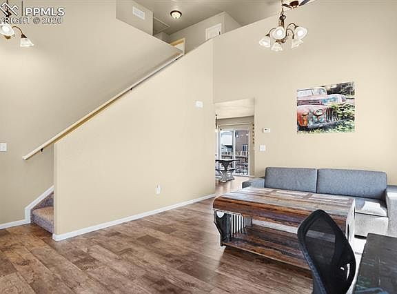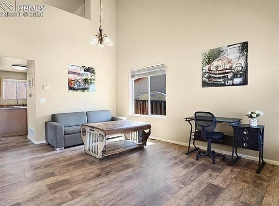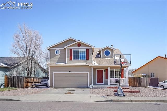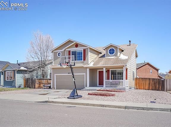 PRIDE IN OWNERSHIP, turn key condition, fantastic floor plan! Upon entering you are greeted with wood laminate floors, high ceilings and natural light. Kitchen contains ample space, stainless steel appliances with an eating area. The family room includes a gas fireplace. Upstairs consists of a loft in addition to 3 bedrooms. The master bedroom is spacious and boasts two large closets; one closet is a walk-in, as well as an attached bathroom. EXTRA LARGE PATIO with built in BBQ; perfect for entertaining. BASEMENT FINISHED by a previous owner, does not appear to have been permitted, can be used as extra bedrooms, workout area, office space, ormovie/game room! XERISCAPE landscaping - Minimal lawn maintenance! RV/Trailer parking on side of home. Close to parks, trails, and shopping at the Markets at Mesa Ridge. Easy access to Ft. Carson, Peterson AFB, I25, Powers Corridor, and Markshuffel for a smooth commute to Schriever Space Command.