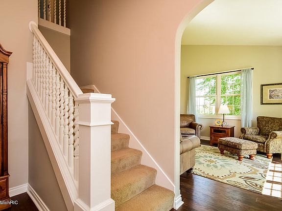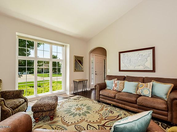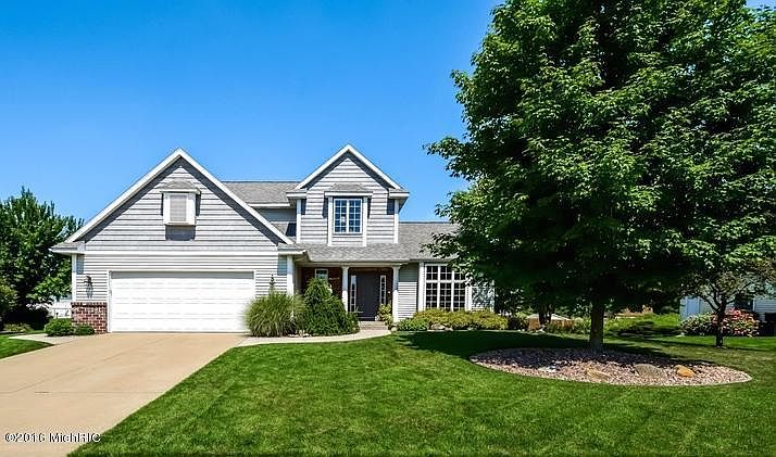 Beautiful home in award winning Byron Center schools! Enter though a warm foyer into a cozy living room filled with natural light. Bright white cabinetry in the kitchen complements tile backsplash & new slate appliances. Breakfast nook allows for access to spacious deck. Relax in front of the gas log fireplace in the family room. Formal dining sits between living room & kitchen; a perfect spot for entertaining. Convenient main floor laundry! Upper level master suite; huge walk-in closet, bathro om w/dual sinks, whirlpool tub & separate toilet room. Lower level offers large family area, full bath, 4th bedroom & tons of storage. You will love the private backyard; gorgeous in-ground pool, diving board & surrounded by a cement patio! Professional landscaping and underground sprinkling!