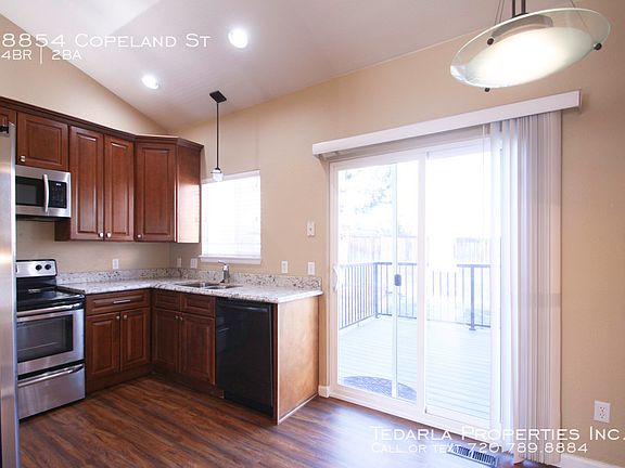 This great home is perfectly located with easy access to C470. It has four bedrooms and two full bathrooms! It has a fully finished basement, attached two car garage, washer and dryer, and large patio in the fenced in back yard. Security deposit is equal to one month's rent. No Pets. Tenant pays water, sewage, gas, and electric. Owner pays HOA, which includes trash and recycling. Disposal. Large Back Deck. Refrig. Stove. Washer/Dryer In Unit