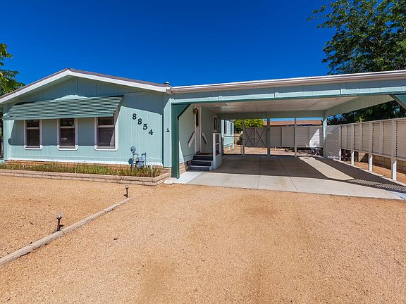 Don't miss your chance to purchase this cute and extremely well cared for home. You will be amazed at the condition. With just under 1200 SF, this double wide manufactured home features 2 bedrooms 2 baths and a 2 car carport on nearly 1/5 of an acre lot. With attractive, low maintenance front and rear landscaping, taking care of the yard is a breeze. This cozy little home also comes with a detached and separate hobby/workshop with electricity and an attached Arizona room which are not included in the square footage.