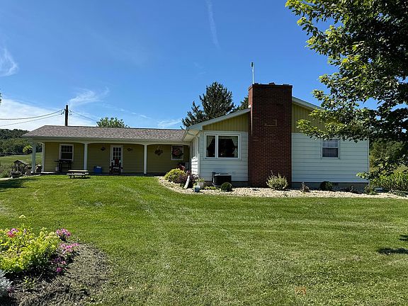 This ranch-style home offers a wonderful opportunity for someone looking for a rural lifestyle with plenty of space for various activities. The combination of the main residence with its outbuildings offers versatility for hobbies, storage, or potential business ventures. Built in 1976, the home has a cozy charm with its two bedrooms and a full bathroom. The kitchen is well-equipped with ample cabinet and counter space, a pantry, and room for a table, making it a comfortable space for cooking and gathering. Plus, the convenience of having the washer and dryer on the main level, adjacent to the breezeway/mudroom, adds practicality to daily living. The living room's wood-burning fireplace with a brick surround adds warmth and character, ideal for cozy evenings. The presence of an informal dining room with a built-in corner cabinet enhances the home's charm and functionality. The basement has been recently painted with concrete sealant. It offers generous storage with additional space for work, recreation, or hobbies. The recent installation of a new furnace in 2023 and central air in 2024 ensures modern comfort, along with the convenience of a whole house fan for ventilation. While some features like the inline filter and oxidizer are sold "as-is," the inclusion of appliances like the washer/dryer, basement upright freezer and kitchen appliances adds value and convenience for the new owners. With its spacious acreage and various outbuildings, this property is perfect for someone interested in starting a hobby farm or pursuing other outdoor activities. It offers a blend of rural living with the comfort and functionality of a well-maintained home—a compelling package for anyone seeking a country lifestyle. Sellers open to reasonable offers.