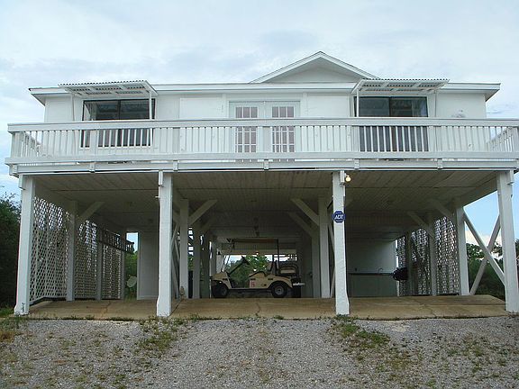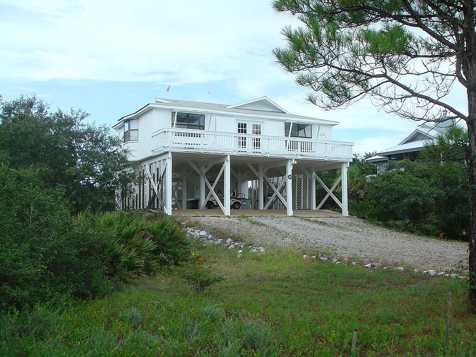 This 1,700 square foot high dune beach house is located at the Cabana Beach Estates - Gulf Highlands area midway on the Fort Morgan peninsula. It has been seasonally used as a single-family vacation home since new, and has never been rented. It comes fully furnished with everything you need and is ready to enjoy with your family and friends, and would also make an excellent investment/rental home. It features a large open living room/dining/kitchen area (22x35) with refrigerator (new in 2012), dishwasher (new in 2016), range/oven, microwave oven, ceiling fans, and washer/dryer. New Hurricane Proof windows installed in 2017, and new Luxury Vinyl Plank Flooring installed in 2018. It has four bedrooms and four full bathrooms (one bedroom is 11x14, the other two are 10x12) with two bedrooms having en-suite bathrooms with showers (7x9 and 5x9), one en-suite walk in closet (6x10), and a main/guest bathroom with a bath tub (5x11). The forth bedroom is down stairs, (11x14) with a full bathroom with a tub/ shower (5x10). The home has three decks equaling 400 sq.ft. - a roof top deck (6x11) with views of the Gulf of Mexico and tree-top views of the Fort Morgan peninsula, a front deck (6x37), and a rear deck (10x11). The home has a large covered under house concrete parking area (36x36) for entertaining guest and/or parking up to six vehicles/boats, with a large driveway (36x76) for boat/RV/visitor parking. The house also has an outdoor elevator for people/groceries/luggage, It has a picnic table/BBQ area (12x20), an outdoor rain shower with bench, and a secure weatherproof workshop/storage area (11x18). It also has a storage area just for beach chairs, umbrellas and beach toys. The house is located on a 76 wide x 270 deep lot at Dolphin Lane, one street from the white sand beaches of the Gulf of Mexico. It sits behind a wind protective high dune, twelve miles (17 minutes) from Highway 59 in Gulf Shores. Cabana Beach Estates is a private subdivision (no public access allowed, strictly enforced) with a single entrance from Fort Morgan Road (Highway 180) via Cabana Beach Road. The home includes a shared deeded Gulf of Mexico beach access lot with a resident permit controlled parking area and boardwalk to the beach (this private lot is 400 long x 53 wide, leading to the 1,300 wide private beachfront). Also included is a deeded shared Mobile Bay access lot with a parking area and a private 150 foot fishing/crabbing pier (this lot is 380 long x 70 wide). The home also includes a four seat beach cart (a Club Car electric golf cart) for the ride to the beach. This pier house was built in 1986 on a raised lot (carport elevation is 25 above sea level), is located 1,000 ft. from the gulf, has fiber cement siding siding, a metal roof, and fresh paint inside and out. Air-conditioning and heating are supplied by a central heat pump air-conditioning systems (rated 4 tons each) plus a mini split system for the downstairs bedroom and bathroom.auxiliary/emergency cooling. Water is city provided, the sewer system is a septic tank (no monthly city sewer service charges), and wired for television (both satellite and cable)/Internet/telephone services, which are available from multiple providers. Baldwin County taxes average $500 per year. Cabana Beach Estates has a voluntary $100 per year Property Owners Association fee which covers maintenance cost of the subdivisions private roads, private beachfront access area, and private bay-side access areas, and is headed by five property owners who are elected annually by property owners. The Beach Club Resort condominium complex, located directly west of the subdivision, offers discounted memberships to Cabana Beach Estates residents that includes the use of their facilities five swimming pools/hot tubs, five restaurants, fitness center, arcade/billiards, etc, and has a professional fireworks show every 4th of July and New Year's Eve.