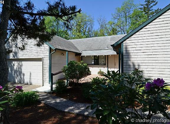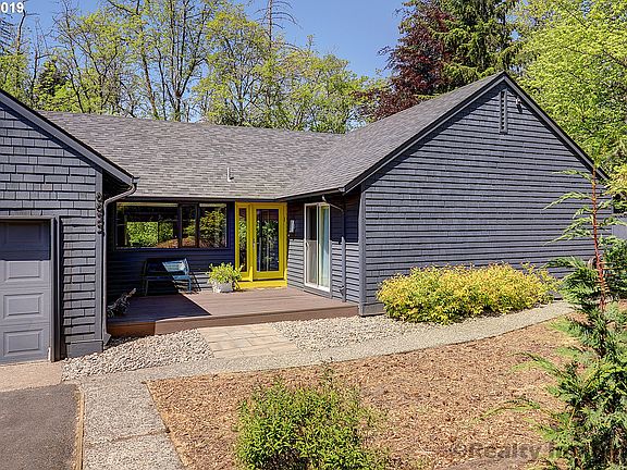 Find serenity in this open and bright charmer. It is set back off the street on a sunny .37-acre lot. Updates include vinyl windows, roof and gutters, appliances, paint, flooring, and bathrooms. Light + bright living/family rooms with vaulted ceilings and walls of windows. Fully fenced backyard backs to Ash Creek. Seller has landscape reno plans that can be included. Don't miss the tranquil detached garden room in the back!