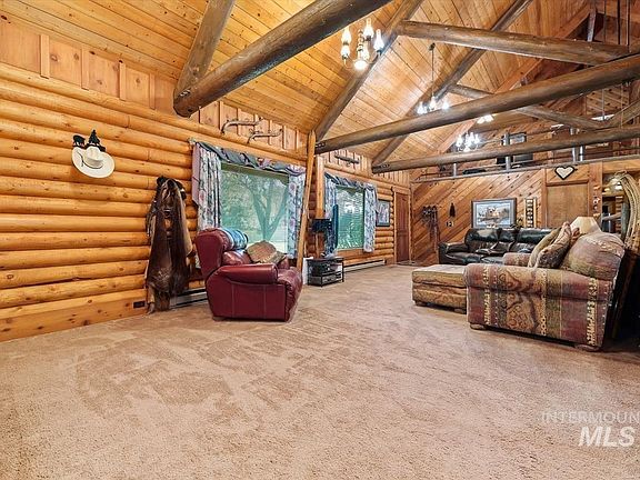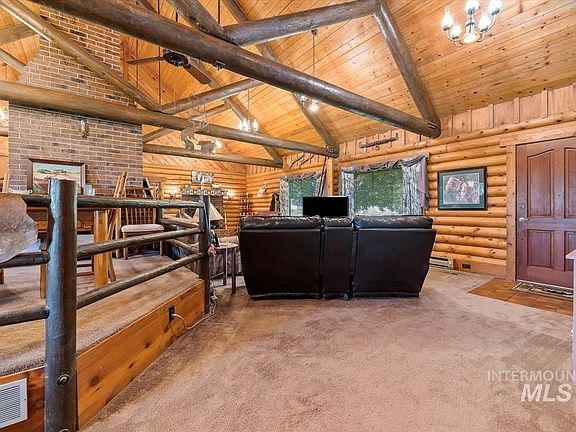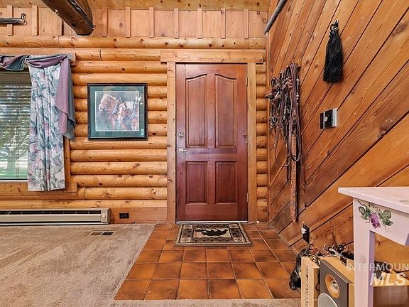 Incredible opportunity to own a beautiful 3 bed/2 bath log home without traveling to the mountains. Open concept main living w/large kitchen that includes an antique cook stove. This peaceful close-in one of a kind horse property on 5 acres, incl. stall barn w/tack room, outdoor riding arena. Fenced/cross fenced w/shelters in ea pasture. You'll fall in love with the park like setting and all the features this property has to offer while being close in to Boise. This property is in 2 parcels BTVAI.