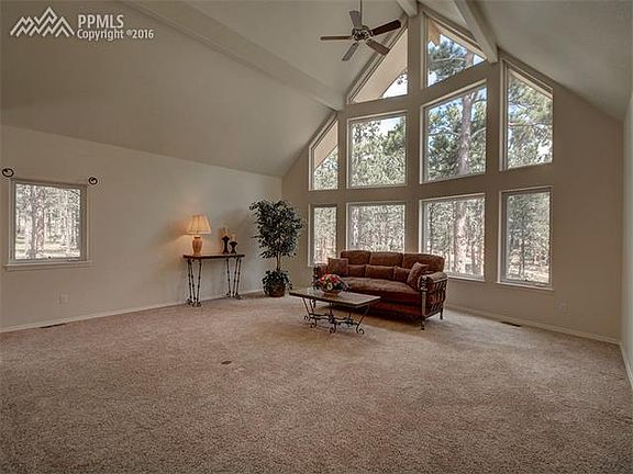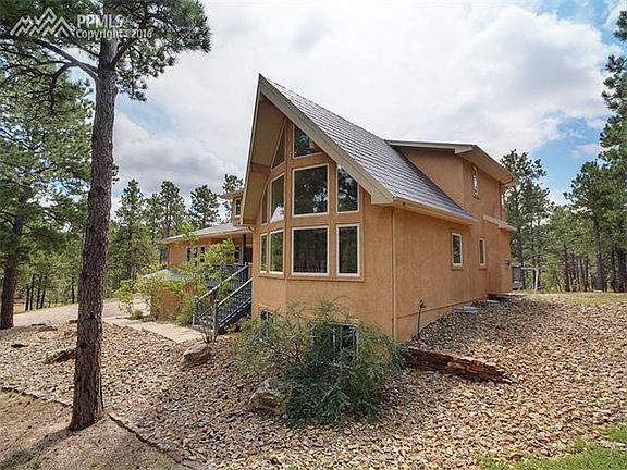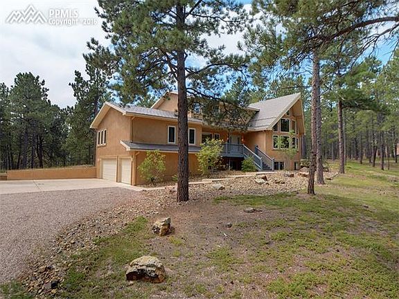 Very private and secluded gorgeous custom home with prowed front architecture on 5.3 wooded/mitigated acres. This stunning house offers one & a half stories, a garden level basement, 4 bedrooms, 4 bathrooms, an oversized & fully finished 3 car garage, all in unbelievable condition. Updated with many upgrades including, Thermador appliances, built-in fridge, 10 ft ceilings. District-20 means award-winning schools. Quick commute to Shriever/Peterson bases & to Springs & Denver. Invisible fence, roof heating on north-side. Drive down a private, winding road of tall, mature, healthy ponderosa pine. Enter the home through a covered entry. To the right is the formal living area w/ a 20' wall of windows overlooking the beautiful lot. The spacious formal dining room offers hardwood floors & room for large dining & gatherings. The kitchen is for the most particular chef, complete with upgraded cabinets with trim, cabinet-paneled refrigerator, stainless steel appliances, double ovens, gas range, an island for additional prep space & breakfast bar. The kitchen overlooks the family room with gas fireplace & walkout to the backyard. The main level also includes the laundry, a full-bathroom, & vaulted great room for t.v & office area. Upstairs is the large master bedroom & bath with its own full bathroom complete with double sinks, walk-in closet, & lots of natural light. The 2 secondary bedrooms on the upper level share a large, full bathroom with double sinks. The basement is garden level offering above grade ambiance & provides a large family room with dry bar & built-ins, additional rec space, 4th bedroom, 4th full-bathroom with double sinks. A large deck offers the ideal place to rest, relax, & enjoy the gorgeous scenery & tranquil living that makes Black Forest famous!