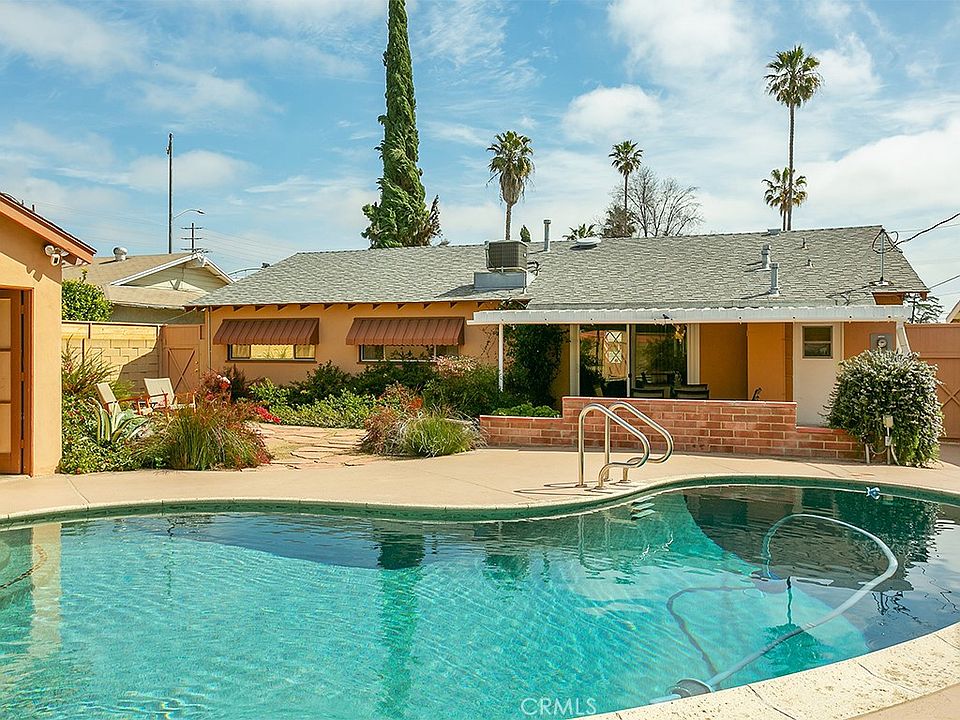 Welcome to this stunning 1,650 sqft home located on a 7,216 sqft lot. This home features 3 bedrooms and 2 updated bathrooms, perfect for comfortable living. Enjoy cooking in the completely updated kitchen with custom cabinets, new granite counters, a breakfast bar, and brand new stainless steel appliances including a dishwasher. The dining room and living room with fireplace provide ample space for entertaining guests, while the laundry room offers convenient in-home laundry services. The new tile flooring throughout the living area and new wood flooring in the bedrooms give a luxurious feel to the home, accompanied by recessed lighting and central heat and air. You'll love the additional space provided by the 2-car detached garage, and the covered patio provides the perfect spot for outdoor relaxation. Take a dip in the pool or unwind in the spa in the comfort of your own drought-resistant yards. Don't miss this rare opportunity to call this home your own!