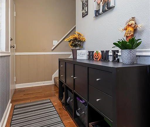Great community! Attached garage walks you straight into your home. Updated kitchen w/ granite counters, marble back splash, wine rack, new appliances. Eat-in kitchen has breakfast area. Large living room w/ larger dining space and fireplace. Patio door overlooks deck. Walk down to yard space to let the dogs out. Half bath on main level. Upstairs has full hall bath for two bedrooms. Large master with private bath. Finished basement has space for office, second living area, etc.