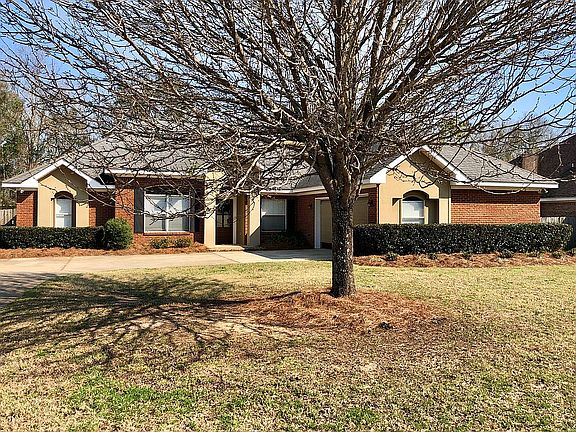 Located in the popular Fairfield Place neighborhood, this 4 bedroom 3 bath custom brick and stucco home has a split bedroom, a sunroom and a fenced backyard! Tall ceilings, luxury vinyl flooring in living areas, blinds on windows. The kitchen boasts beautiful white granite counters with a white backsplash, under cabinet lighting with loads of white cabinets, large sink with disposal and an eat-in bar and breakfast area as well as stainless appliances and refrigerator. Separate dining area with lots of natural light. Master suite is large and inviting with its tub and double vanities! Bedroom 2 and 3 share a bathroom while bedroom 4 has its own en suite bathroom with shower. Laundry room is spacious with lots of wall space. Covered back patio with tongue and groove wood ceiling. Fenced yard. Double car garage. Easy walking distance to Fairhope schools.