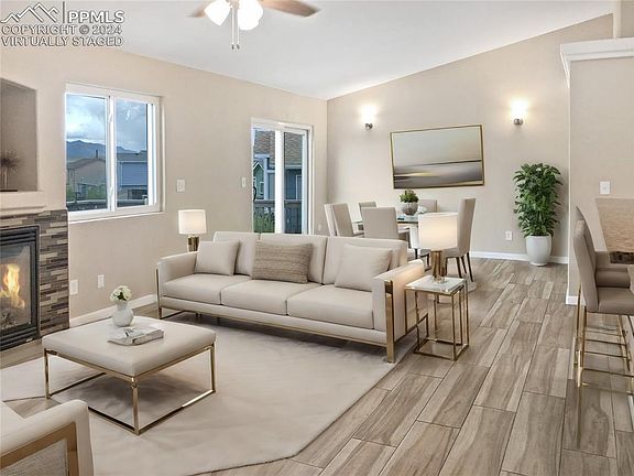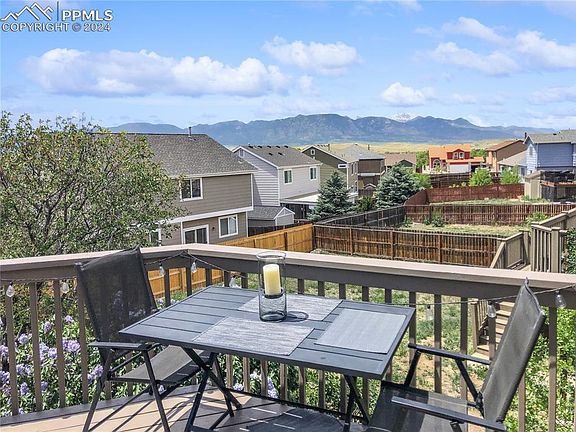 Exquisite Remodeled Rancher with Stunning Pikes Peak Views. Nestled in a tranquil cul-de-sac, this beautifully remodeled ranch home offers breathtaking views of Pikes Peak. Located in a neighborhood that exudes pride of ownership, this home has been completely transformed since 2018, including a new roof, gutters, exterior paint, deck, flooring, AC unit, fully remodeled kitchen, windows, and appliances. The gourmet kitchen is a chef's delight with high-end granite countertops, a stylish tile backsplash, hickory cabinets, a pantry, a counter bar, an eating area, and ceramic tile flooring with a wood finish that extends into the great room, formal dining room, and hallways. It also includes a new smart stove with a built in air fyer. The vaulted ceiling great room boasts a tiled gas fireplace and access to outdoor deck and entertaining space. The spacious master suite includes luxuriously renovated spa-inspired bathroom and a walk-in closet. The walkout basement offers a large recreation room with a second gas fireplace, a wet bar with a refrigerator, a junior suite, an additional large bedroom, a full bath, and ample storage. Enjoy the beautifully landscaped yard and mountain views from the charming patio. Additional features include pocket doors, bay windows, and main floor laundry. This exceptional home, with no HOA but community covenants, combines luxury and comfort with unparalleled views. Don’t miss this opportunity to own a stunning, move-in-ready home in a wonderful community, close to parks, schools, and local amenities, and within walking distance to the local elementary school!