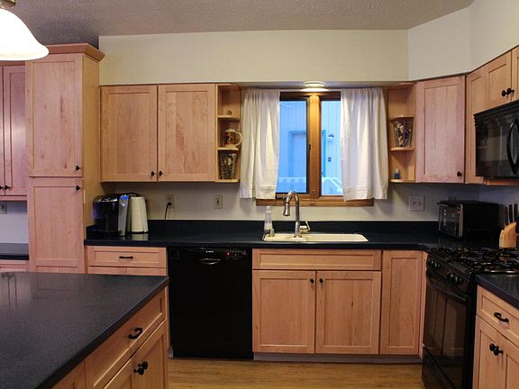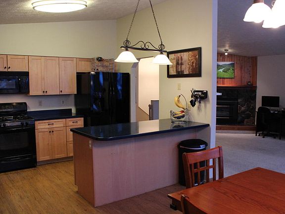 Open Concept, Huge windows, Remodeled Kitchen w/birch cabinets, corian countertops, new microwave, vaulted ceilings, gas fireplace w/blower, main bath features double vanities, Jacuzzi, Quartz Countertops & Skylight. Tiled Entry w/hardwood stairs. Backs to Greenbelt & Bike Trails. Yard is fenced and private. New Roof 2005, Close to Alpenglow.
