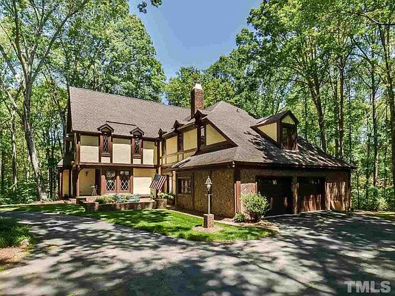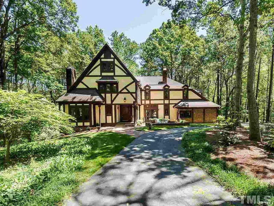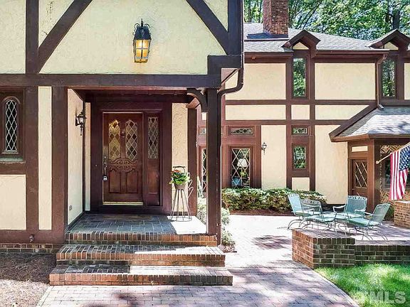 A charming 4 bedroom Tudor situated on a lush 2 acres in desirable Springdale Estates; a beautiful neighborhood just outside of the city limits of Raleigh and in the Leesville school district! Gorgeous features throughout, including hardwoods, two fireplaces, & an open kitchen with large center island & granite counters! Upstairs find built-ins, a huge laundry room, bonus room, & the master bedroom with en-suite! Outside, appreciate the tranquil cut-de-sac location, private back deck, & mature landscape!