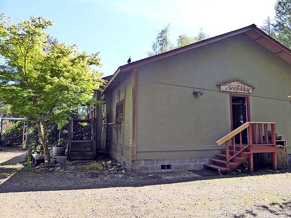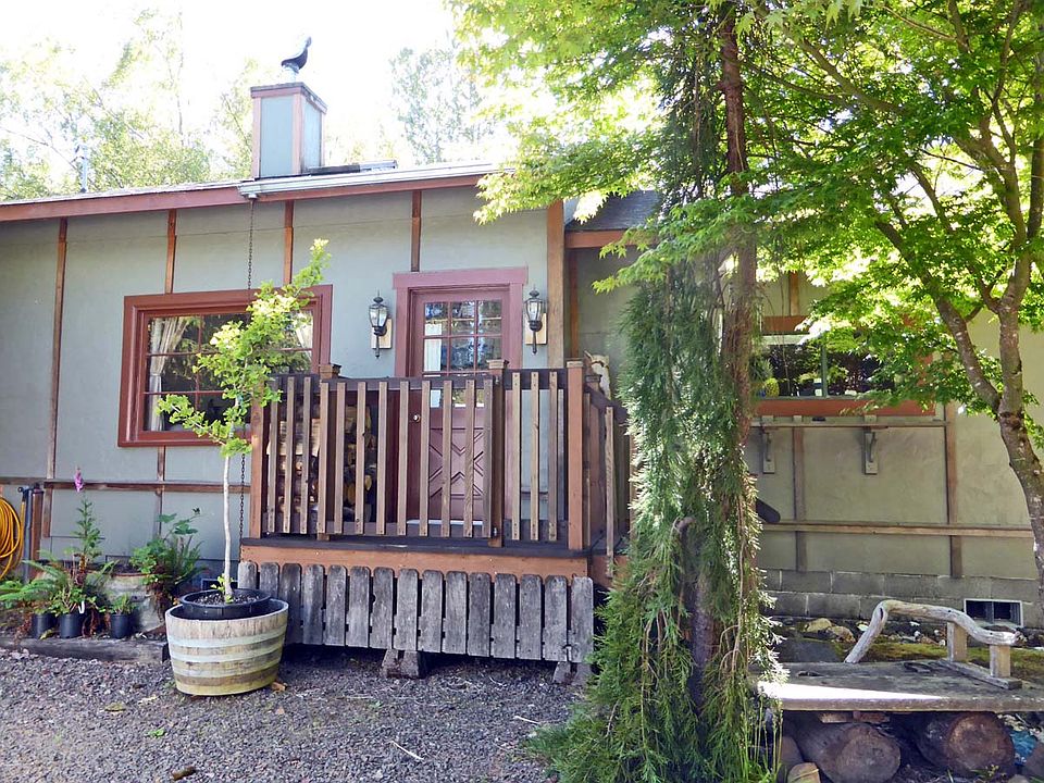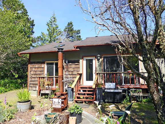 Home is situated very near to the north lot line, roughed in access to back yard may be over line. 2-bdrm, 1 bath, 1276 sq. ft. home has lots of skylights, and a cozy living room with woodstove. Kitchen features lots of built in storage and a center cook island. Master bedroom, bonus room, and sunroom/utility rooms all have easy access to the back yard.