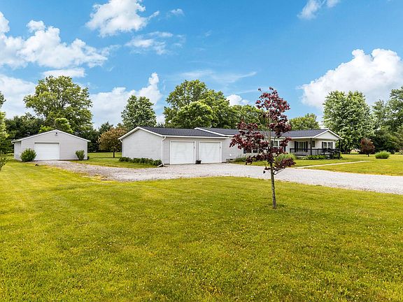 Beautiful open concept ranch home includes 3 bedroom, 2 bathrooms, large family room, large kitchen with lots of cabinets and an island, covered front porch to enjoy your morning coffee and a back deck that allows for your afternoon relaxation. 2 Car attached garage. Detached 24'X24' building with a furnace and a restroom. A few of the updates include Laminate flooring August 2021, Water heater replaced in 2021,New roof December 2021, New well, well pump, bladder and water softener in February 2023.