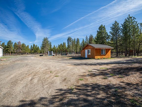 Rural living .8 miles from La Pine out in an private and quite wooded area. Here is an opportunity for sweat equity. The 3 bdrm/2 bath 1999 manufactured home setting on a foundation requires a complete rehab, bring your vision and tools!. This unique 5 acres is quiet and the perfect country setting that adjoins BLM land allowing you to ride your horse right out back, though the woods. The property is Perimeter fenced making it ideal for a horse or other animals. Wildlife is abundant. The cozy rustic bunkhouse sleeps 4 making it a getaway retreat to enjoy lake fishing, hiking or hunting. Key improvement, the wildland fire hazard mitigation has been completed. All the essential utilities are in place; well, septic, and electricity. Whether you're seeking a homestead, a recreational retreat, or an investment opportunity, this one has the bones and the setting to make it shine.