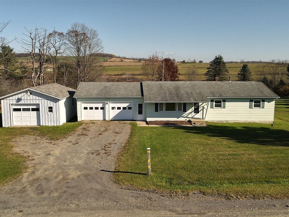 You will want to see this 3 bed, 1 bath home sitting on over 2 acres of Plush land located in the Whitney Point School District! This property has so much to offer inside and out starting with ideal 1 floor living inside the home. The attached 2 car garage will keep you out of the weather and leads you into a nice kitchen and dining area. Walk through to the living room and continue on to 3 nice size bedrooms, including a Big Master bedroom, that all feature oak hardwood flooring! Downstairs there is a large 26x24 family room with heat that really adds some nice square footage to home! Step outside and enjoy the AMAZING workshop complete with concrete flooring, electric, and the option to have a wood stove for heat with piping already installed! Step out on the back deck and take in the beautiful scenery and peacefulness of over 2 acres of lawn with unreal views of the valley. A lean to structure is present and perfect to store all of your toys as well! Schedule you're showing today!