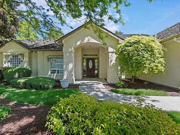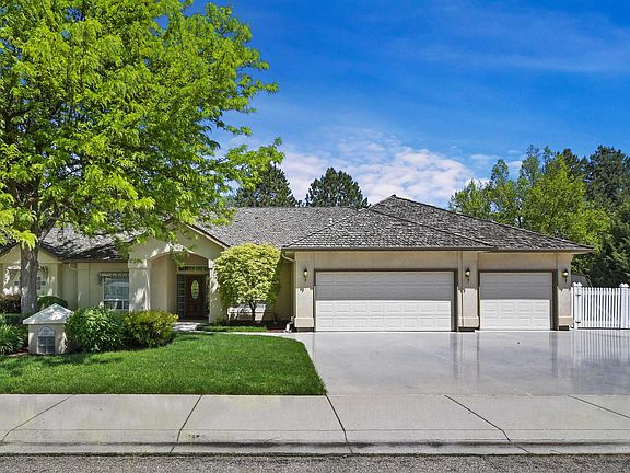 Your chance to own a 1/2 acre of picturesque waterfront setting in the heart of Meridian situated in a quiet culdesac, minutes from all the necessities. This single level jewel boasts beautifully manicured landscaping, finished & decked out 3 car garage, RV parking, ideal split floorplan with 3 access points to the tranquil backyard. This oasis is complete with an expansive covered patio, 12x16 shed, and peaceful park-like setting with wildlife on display utilizing the stream behind and private pond. The oversized master suite boasts a cozy gas fireplace, dual walk-in closets, jetted tub, huge shower, and backyard access. Meridian Greens is an established neighborhood coveted for its tidy meticulous landscaping, well-cared for homes, and convenient proximity to freeway access, schools, entertainment and shopping. Don't miss out!