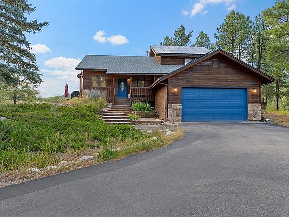 Welcome to your dream home in the highly sought-after Edgemont Ranch community, nestled in the heart of Durango, Colorado. This exceptional property is situated at the end of a tranquil cul-de-sac, boasting a sprawling 1.3-acre lot that provides both privacy and space to enjoy the picturesque mountain views that surround you. Step inside this remarkable abode, and you'll immediately be captivated by the blend of modern comfort and rustic charm. The centerpiece of the living space is the brand-new wood-burning stove and flue pipe, a Lopi Evergreen II model, installed in 2022. This addition not only imbues the interior with a cozy ambiance but also ensures efficient heating during the colder months. A hallmark feature of this all-electric house is its forward-thinking sustainability. With an impressive 8.6 kW PV solar system by Shaw Solar, you'll not only enjoy reduced energy bills but also the potential to further expand the system with 4 to 6 additional panels. The home is also equipped with the latest in energy storage technology, boasting two Tesla Powerwalls that provide uninterrupted power supply and energy security. As you move throughout the residence, the attention to detail becomes evident. Upstairs, new wood floors and doors adorned with French quarter sawn white oak exude timeless elegance. The innovative HVAC heat-pump system ensures both cooling and heating efficiency, with the added benefit of sealed ducts. The heat-pump water heater further exemplifies the property's commitment to eco-friendly living. Safety and maintenance are top priorities, with the radon system receiving a thorough inspection in 2022 and the dryer vent being meticulously cleaned in October 2021. The main bathroom indulges you with electric underfloor heating, allowing for luxurious comfort year-round. The induction cooktop in the kitchen not only offers precise temperature control but also aligns perfectly with the home's energy-efficient theme. Illuminate your living spaces with thoughtfully integrated LED lighting, combining functionality with elegance. Downstairs, the American Clay bathroom walls provide a unique touch, creating an inviting and textured atmosphere that elevates your daily routines. This extraordinary property offers an unparalleled combination of location, sustainability, and comfort. Sit back on your deck, soak in the breathtaking mountain vistas, and relish in the serenity that comes with owning a home in the prestigious Edgemont Ranch community. Embrace the Durango lifestyle in a residence that embraces you in return. Don't miss the opportunity to make this house your forever home.