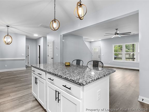 Welcome to this stunning, nearly new home, freshly updated with all modern touches! Featuring all-new LVP flooring, new carpet, and fresh paint throughout, this home feels brand new. Nestled in a well-established neighborhood with NO HOA, enjoy relaxing on the newly stained covered front porch or back deck. The open-concept layout includes a kitchen with a large granite island, subway tile backsplash, farmhouse sink, stainless steel appliances, and a pantry. The downstairs guest suite has a full bath, while upstairs offers three additional bedrooms, a huge bonus room, and a primary suite with a large walk-in closet. Natural light floods the home, enhancing its warmth. The laundry room is equipped with cabinets for added functionality. Located near I-295, Fort Liberty, Methodist University, and a variety of restaurants, this home offers both comfort and convenience. This move-in ready gem combines contemporary style with the comfort of new updates, making it the perfect place to call home.