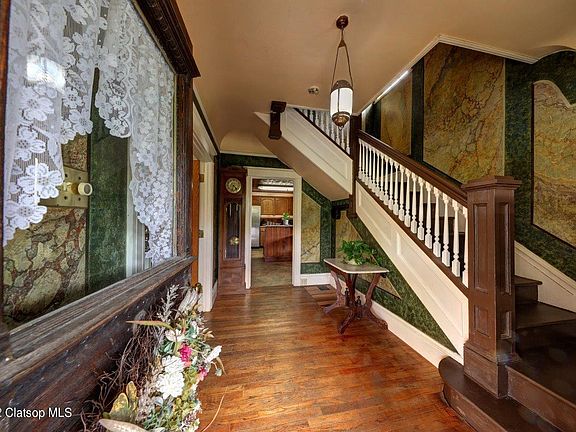 Beautiful 1903 home perched on a hill on the North Slope, built by a Belgian artist, still maintains much of its integrity. The period front door opens to a foyer with a mural painted by the artist depicting an aerial view of the Columbia River & a lovely lead glass window at the landing of the appealing staircase. Grand columns separate the living & dining rooms which have 9' coved ceilings. Rich mahogany wainscoting in the dining area provides a touch of elegance. Tucked up in the attic is a delightful space with spectacular views & a balcony.