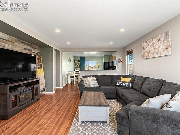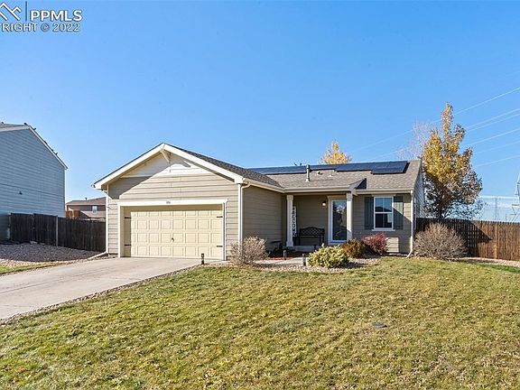 Welcome home to this stunning move-in ready rancher in Highplains! This home features 3 bedrooms, 2 bathrooms, 2 car garage and is nestled on a quiet cut-de-sac street which backs to open space. The covered front porch and curb appeal with fully landscaped front yard will have you in awe! Walking in, you are greeted by gorgeous wood floors, open entry with custom lighting, and a bright living room. The updated kitchen is equipped with black appliances, large farmhouse sink, pantry, and a dining area with walk-out access to the large backyard. Make your way to the large master suite with adjoined bath. Completing the main level is two additional bedrooms and full bathroom. The back yard is fully fenced and allows privacy as it backs to open space. The concrete patio is perfect for entertaining on those gorgeous Colorado nights! Home has solar panels offering an extra benefit of reduced electrical usage! Home is within close proximity to Barr Lake State Park allowing access for hiking, boating and outdoor activities! Easy access to I-76, DIA and downtown. Schedule your showing today as this home is not one to be missed!