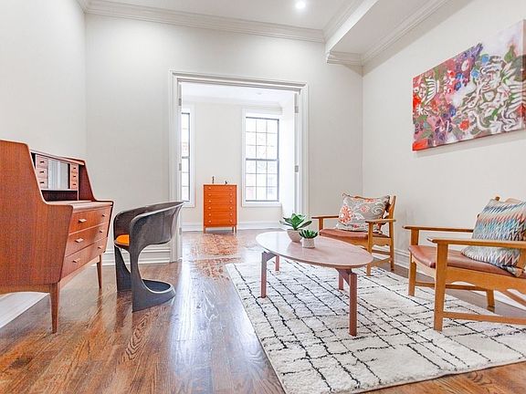 Born in 1900, the building was reconstructed to Architectural Digest worthy specs. Natural light pours into this half floor residence through four mullioned windows. Custom millwork lines each doorway and frames each wall with traditional townhouse elements. Apartment features: elegant proportions, washer & dryer, dishwasher, central air, split bedrooms, and the master bedroom is comprised of two rooms. LED lighting and a Nest Smart Thermostat. Building features: CCTV security, bike room, 750 SF landscaped yard with mature trees for making memories. Professional property management, and perhaps the best location in Bed-Stuy on the cusp of Bushwick. 3 blocks from the express Gates JZ, Blink Fitness, CVS, and everything else you could want in a neighborhood. Welcome to your new home. Cats ok, no dogs, sorry.