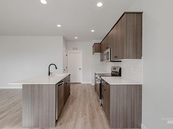 Get up to $30K now thru 11/30/2025 with the Festival of Homes Promo! Embrace the comforts of a brand new home in Meridian, Idaho. Welcome home to the timeless Poe 1471! Here you'll enjoy a thoughtfully laid out living space with an open concept main level and all three bedrooms tucked upstairs. The kitchen comes with stainless steel appliances and stylish solid surface countertops, adding both functionality and aesthetics to the kitchen. Easily slip outside for some fresh air on the back patio off the dining room. The spacious kitchen is perfect for meal prep and entertaining, featuring modern appliances and ample counter space. Retreat upstairs where the primary suite and two other bedrooms await, offering a peaceful sanctuary. The primary suite includes a large walk-in closet and a luxurious en suite bathroom. Photos are of the actual home!
