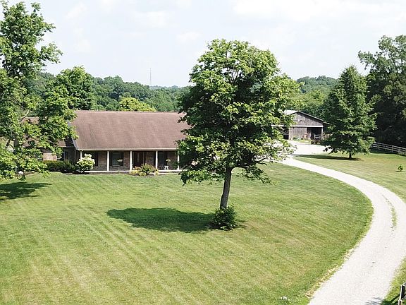 Gentleman farmer's dream come true - Exceptional 39 acre farm in Southern Campbell County. Sprawling brick ranch w/covered front porch. Open concept with grand foyer. Eat-in country kitchen, cherry cabinets w/rounded corner cabinets. Opens to great room w/vaulted ceilings & stone fireplace. Glass doors lead to a large concrete patio & in-ground pool w/shelter. Elegant formal dining room. Hardwood floors through these living spaces .Generously sized bedrooms. The primary bedroom is a true retreat. Pamper yourself in the jacuzzi tub, a walk-in shower, walk-in closet. Note the size of the other bedrooms - both with large closets. 1st floor laundry. Fantastic finished basement features a stone wet bar seats 10-12, a huge family/game room, and 2 offices. Abundant storage. 3rd garage in LL. Geothermal heating & cooling! 40'X70' tobacco/cattle barn with hay loft & Tack room. 40'X40' concrete cattle feeding area w/automatic waterer. Good Boundary & cross fences for pasture mgmt. Water piped to automatic waterers in the pastures - continuous fresh water for your animals. Truly a gem! Just 30 minutes to Cincinnati. Don't miss this rare opportunity to own this outstanding, right-sized farm