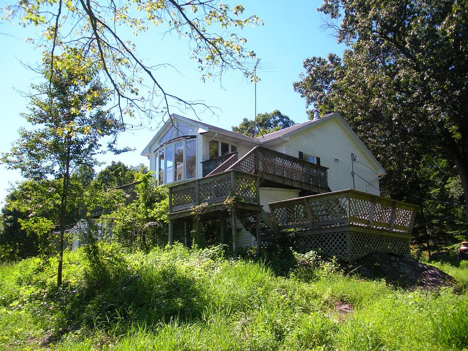 Private 2 bedrooms house on 6 acres of land. It over looks 400 acres of open space and adjacent to brook/pond. Two bedrooms One full bathroom with jacuzzi and shower. Two cars garage with build in shelves, work sink and adjacent half bath. Large family room with stowpipe wood stove opening to kitchen. Kitchen with center island cooktop, refrigerator and microwave. Two bedrooms with bay windows. Large sunroom that go onto a large wooden deck. There are three decks. The House is located in the Town of LaGrange and it is part of the Arlington School District. Tenant responsible for all utilities and garbage disposal.