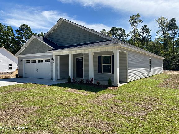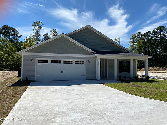 5 MINUTES TO NORTH TOPSAIL BEACH! NO HOA and NO CITY TAXES! Location is convenient to bases, beaches and everything Sneads Ferry has to offer. As you walk in from the covered front porch you will be delighted to see what this gorgeous new construction home has to offer. The awesome open floor plan has lots of room with a 3 bedrooms 2 bath split floor plan. The beautifully designed open kitchen and huge living and dining room will WOW the chef! The kitchen features granite counter tops and a HUGE granite covered island! Grab a book from your custom built in book shelves and cozy up to your electric fireplace in the living room. The book selves have space for a massive TV. The living room has vaulted ceilings that gives a feeling of space and light. Soak your cares away in your JETTED TUB with custom tile accent. The bedroom en suite also features a large bathroom with cultured marble counter tops, a walk in shower and a huge walk in closet. Additional upgraded features include stainless steel appliances, designer inspired paint, luxury vinyl plank flooring throughout the entire house, new lighting including gorgeous pendant lighting over the granite island and beautiful cabinets. In addition, you will enjoy smooth ceilings, ceiling fans, can lights, plus brushed nickel hardware! The finished garage features epoxy coated floors and to top it off the garage door openers are programmable to your smart phone! WHAT! Exterior features include a covered front porch and a back yard patio, HUGE concrete driveway with extra turn around spaces, architectural shingles, low maintenance vinyl siding, energy efficient heat pump and sodded front yard all on a large .48 Acre Lot. The pictures don't do this home justice. Visit this gorgeous property and see for yourself what this beautiful home has to offer!