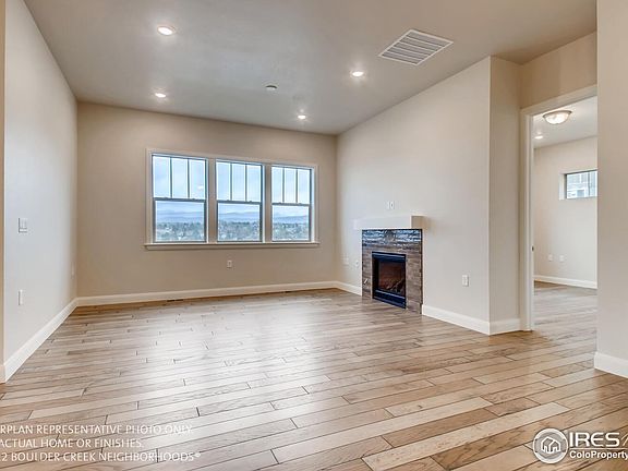 Main Floor Living at Colliers Hill! This Huron plan is a beautiful cottage style home with tons of charm. You'll love the 8 foot doors and 10 foot ceilings that give it the class it deserves. The wide open great room, dining and kitchen are great for being with family and entertaining. Come explore this Ranch Style home with a Full Primary Suite, Guest Bedroom, Private Study and Laundry all one the main floor plus a Finished Basement with Rec Room and Additional Bedroom. West Edge at Colliers Hill, by Boulder Creek Neighborhoods, is a one of a kind, all ranch-style enclave. These lower-maintenance homes are enviously located on the very western side of the Colliers Hill community, just moments away from Downtown Erie, known for boutique shopping, fine dining, and nostalgic outdoor events. West Edge at Colliers Hill provides the rare opportunity to live in a new, lower-maintenance home in a community with all of the modern-day amenities, a community center, swimming pools, parks and trails, with the small-town charm of Historic Old Town Erie right in your backyard. Home is Under Construction. Move in February 2023