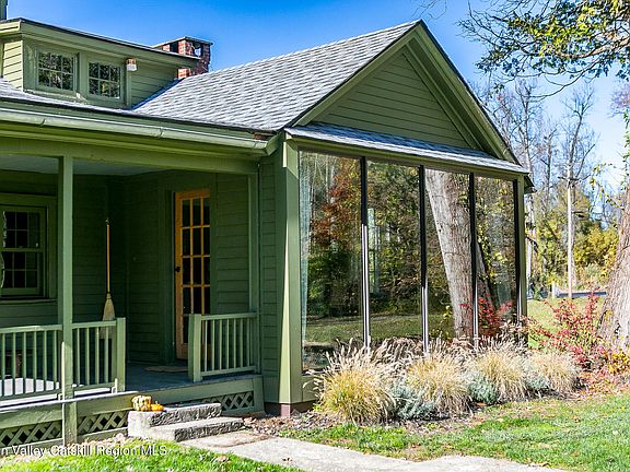 Perfectly sited on an historic River Road skirting the Hudson, the c.1820 Garrett Sickles House was expertly treated to a four-year restoration completed in 2023. This well-proportioned center hall was reimagined in collaboration with famed interior designer Nick Spain, and the house has been impeccably renovated from stem to stern: boasting of timeless finishes, modern conveniences and a touch of Brutalism in its cast. Featured in the likes of Wallpaper* and Upstate House, this property drips with timeless cool: original details are found throughout, from lavishly wide floorboards and chestnut ceiling beams to original moldings and an early American fireplace. The first floor presents a newly-designed kitchen featuring a massive green soapstone island and striking floor-to-ceiling & wall-to-wall windows - creating a bucolic diorama with its natural setting of fields and trees. A professional grade French door refrigerator and separate butler's pantry, Bosch dishwasher and oversized Verona stove make cooking and hosting next level. The dining room features a new wood-burning stove, foot-wide floorboards, beautiful wall coverings and dramatic lighting. The golden and earthy tones continue to the living room, where symmetrical design makes the working fireplace the focus and six-over-six windows allow the western sunset to bathe the space in natural light. Off the living room, the first floor bath nods to modernism with a custom concrete sink, green concrete-skimmed walls and imported handmade plumbing mixing with the original restored clawfoot tub. An adjacent home office sits on the southeast corner of the home with windows on both sides, making it the perfect place to focus and find inspiration. Upstairs, the color palette lightens. A guest bedroom with its own private staircase has two built-in beds, allowing guests autonomy and seclusion. The primary oversized bedroom holds large windows on three sides. Cross breezes keep the space cool in the summer, and the internal chimney warms the home on winter nights. A second bedroom adjoins the main bedroom, as does a custom bathroom featuring Waterworks fixtures, a deep soaking tub, a double sink and floor to ceiling handmade Spanish tiles. Outside, the original cedar facade of the home was hand restored and finished. An inviting porch on the front of the house and a larger one on the back makes for the perfect setting to read a great book or share in conversation with friends. The Garrett Sickles House is a true, move in-ready oasis featuring new household elements: two newly rebuilt & refined chimneys, roof, 1500 g concrete septic tank, leech field, plumbing, oil tank, 400amp electric system (ready for your EV), appliances, Generac backup power system, and custom Marvin Signature Ultimate windows. And the Stuyvesant location is equidistant from the center of bustling Hudson and charismatic Kinderhook. There is never a loss of things to do at the Garrett Sickles house. Warren Street in Hudson is a short drive and features a number of highly-regarded restaurants, art galleries and clothing stores. Bartlett house, Coopers Daughter, Art Omi, Kinderhook Farms, The Jack Shainman School, Klocke Estate and dozens of other attractions are all within the immediate area, ensuring that weekend getaways are always entertaining. The home is also available fully and partially furnished - pricing option available