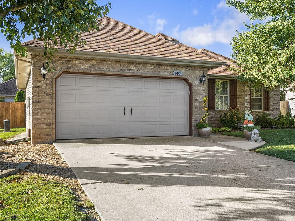 Welcome to 886 W. Paddington Dr, Nixa, MO! Located just one mile from Downtown and in the top-rated Nixa School District, this 4-bedroom, 2-bath home offers modern comfort and convenience.This home is truly move-in ready, featuring a new roof and HVAC system (installed within the last two years), fresh interior paint, and premium laminate flooring throughout. The open kitchen boasts a walk-in pantry, new stainless steel appliances, and a separate laundry room with the washer and dryer included. The spacious living room includes a cozy gas fireplace.The meticulously designed backyard is perfect for entertaining or relaxing, featuring a new concrete patio, floodlights, a segmented pet area, new landscaping, and a 400 sq. ft. fenced garden plot with easy-access gates.Don't miss this completely updated, single-story gem in Nixa! With easy access to all the amenities Springfield has to offer, your search for the perfect home ends here!
