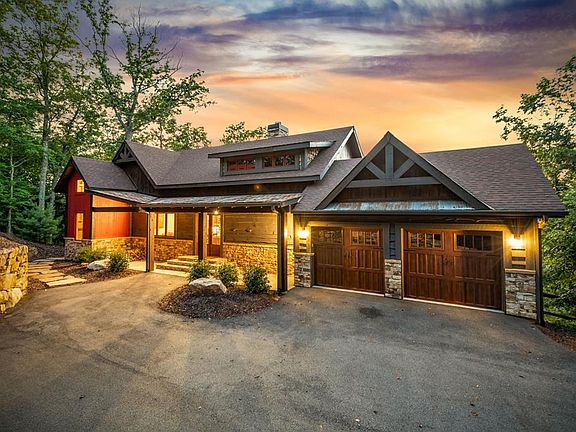 Discover your perfect mountain escape with this stunning 4-bedroom, 4.5-bath cabin, offering breathtaking layered views of the Blue Ridge Mountains. Merging sophisticated design with a profound connection to the natural surroundings, this residence provides an elevated lifestyle that balances modern comforts and rustic charm. The heart of the home is a spacious, open-concept kitchen, outfitted with top-of-the-line Viking appliances and accented by striking stone details that add warmth and character. A convenient butler's pantry offers extra storage and hides appliances, making entertaining seamless and keeping the space organized. The impressive stone fireplace acts as a captivating centerpiece, inviting relaxation and gathering while large windows frame the panoramic mountain vistas—allowing you to enjoy nature's ever-changing beauty. Begin each day waking up to awe-inspiring views from the primary suite, which features a luxurious spa-like bathroom with a massive wet room, a soaking tub, and dual walk-in closets, creating a private retreat to unwind and recharge. The lower level maximizes space & versatility, with soaring ceilings and abundant room for recreation and downtime. It boasts a second fireplace, a sleek wet bar, and two en-suite bedrooms, offering privacy and convenience for guests. A specially designed bunk room, complete with four built-in beds, provides endless fun and a perfect hideaway for children or additional visitors. Both levels open to outdoor living spaces featuring fireplaces—ideal for cozying up on cool mountain evenings or enjoying outdoor gatherings throughout the year. Practical details include a spacious parking pad, a two-car garage, and a thoughtfully built storage room for storing tools and outdoor equipment, with extra storage above the garage for additional needs. This fully furnished and move-in ready home presents an outstanding opportunity for year-round living or a lucrative short-term rental investment!