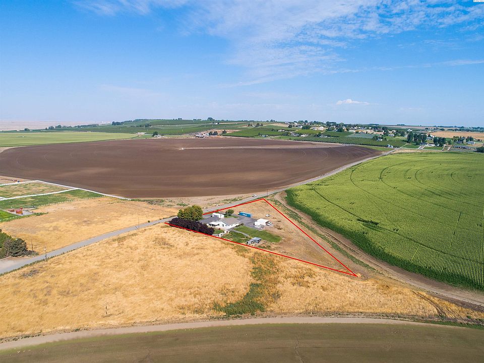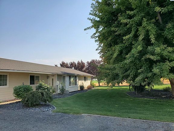 MLS# 264075 2 Acres in North Pasco with a view of the valley. Main house is 1900 square feet with four bedrooms, living room and oversized bonus room. Projector, projector screen and TV included for all your entertaining needs. Spacious kitchen with attached dining room was updated in 2014 with white cabinetry, granite counters and stainless appliances. Extra storage with interior fruit room/pantry and garage storage room too. Guest house was added in 2007 and is an additional 1300 square feet residence with one bedroom and ¾ bathroom. Open concept kitchen and living room. The two homes share a gathering room with wood burning stove and views out the slider of the covered patio, manicured landscape, and water feature. Each home has individual entries and patio access via sliding glass doors. Whole house water filtration system added in 2019. Potential for income property with one or both homes being rented separately. Both homes have previously been rented separately for past two years. Three outbuilding and root cellar complete the 2 acres property.