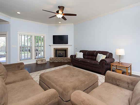 Beautiful custom home on huge lot in desirable Brookhaven with great curb appeal and courtyard entry garage! As you enter the foyer, you will notice the handscraped hardwood floors throughout the entry, dining room and living room. The large dining room featuring wainscoting and tons of natural light is a great place for holiday gatherings. Great kitchen features custom cabinets, granite and stainless appliances. Wonderful upgrades throughout feature crown molding, recessed lighting and wood shelves in closets. Custom-built mud bench is the perfect place to drop bags and coats and to help keep you organized. Master suite with separate vanities with custom cabinets, separate shower, garden tub and large walk-in closet. Plenty of room with three additional bedroom and two more baths. Bedrooms 2 and 3 are joined by a jack-n-jill bath with double vanity. The amazing back yard is perfect for entertaining! This is one of the biggest lots in the entire neighborhood, is fully fenced, and features great landscaping with beautiful trees, an extended and stained patio and built-in custom fire pit. Neighborhood is right across from Daphne East Elementary and Daphne Middle School. Just a short drive to shopping and I-10. This is a must see!