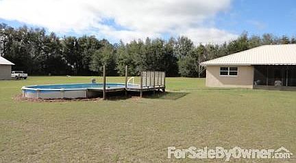 -4 bed/ 2.5 bath concrete block home w/ metal roof -7.5 acres -huge eat in kitchen w/ oak cabinets and silestone counter tops. -stainless steel appliances/ gas stove -pantry -formal dining room -walk in closets -beautiful master bath -tile floors and laminate wood floors through out -attack space for storage -attached 2 car garage-heated and cooled w/ parking pad on out side. -15 x 30 pool -screened in back porch -huge 30 x 50 enclosed pole barn (workshop) w/ power and a 12x50 overhang on one side. This house is a must see concrete block home/ stucco and brick exterior. Built to last. Home is located on a 5 acre parcel with another 2.5 acres for extra space or another parcel to build on. (2.5 acres is included in price.) Fully fenced yard. 15 x 30 above ground pool, dug in the ground to keep it cool. Underground utilities. equipped with a quick disconnect for generator use. Additional property info: http://www.forsalebyowner.com/listing/4-bed-Single-Family-home-for-sale-by-owner-8860-sw-25th-ave-32693/24017581?provider_id=28079
