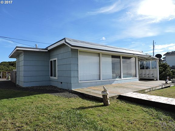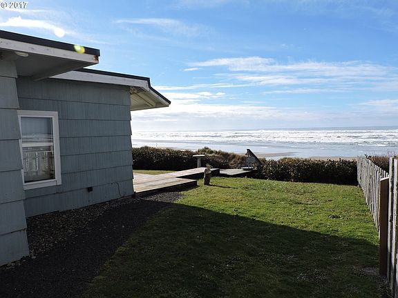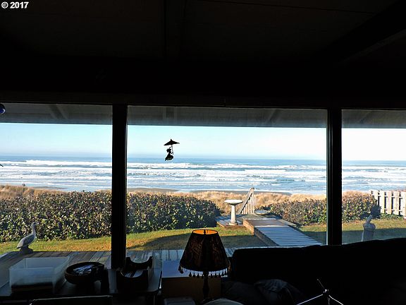 Ocean front home just steps from the beach. Open floor plan accentuates the beautiful views throughout your living room, dining area and kitchen. The west wall is panoramic view windows with stunning, unblockable views of the ocean. You will love the private steps to the beach, back deck and covered patio with dramatic ocean views. Two bedrooms, one bath with a walk-in shower, gated RV parking to the right. Please do not disturb tenant.