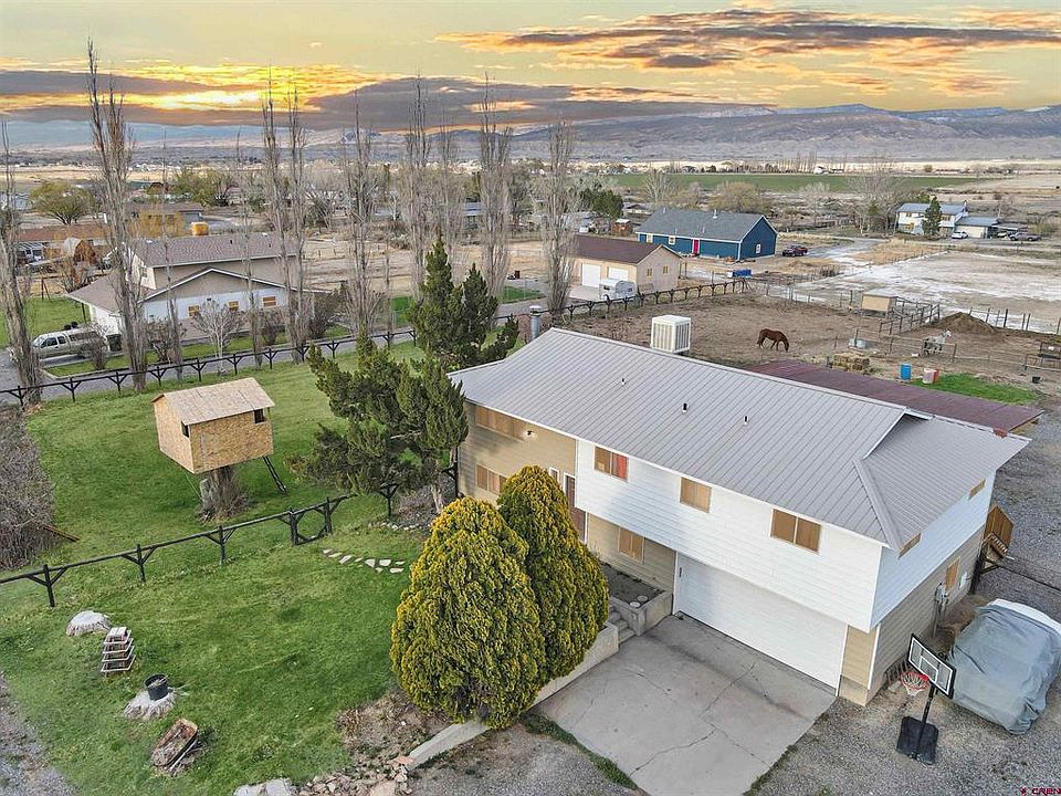 Come on in, make yourself at home and enjoy this handsome property on an acre of mature landscaping, irrigation water and ample room to build your dream shop and additional dwelling. This functionable, bi-level home underwent a full remodel in 2019 which includes new cabinets, countertops, paint and a metal roof just to mention a few updated items. New luxury vinyl flooring and water heater were also updated in 2023. This home features an open floor concept on the top level with a vast living area, cozy wood burning stove, kitchen/dining area, three (3) bedrooms, 1 full guest bathroom and an ensuite master bedroom. The lower level has a cosmic family/game room that has an extra open area that would be a perfect fit for an office or play area, a large bedroom and a functional laundry area which includes a half bathroom, which allows ample space to add a walk in shower. Step out into the 2 car attached garage that has a utility sink and an extra hookup for a washer and dryer. Use your imagination and convert this home into a multigenarational home. Sit and relax on the newly constructed deck that exquisitely captures the magnificent views of the Grand Mesa, San Juans, Cimarrons, Black Canyon, West Elks and the picturesque Western Colorado sunrises and sunsets. There is a setup for horses and chickens, so bring your farm animals with you. If you desire a non-restrictive property, with an informal homeowner's association on a private cul-de-sac country road, this is the property for you. Small, quaint and friendly neighborhood. Come and check out this happy place full of love. Let's make your homeownership dreams come true with endless possibilites. I can not wait to make this country charmer your next home.