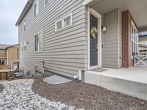 Welcome to this charming two-story, three-bedroom home that perfectly pairs modern design and comfortable living. The main level features an open floor living area that flows easily into the dining space and kitchen, fully equipped with stainless steel appliances, center island, quartz countertops, subway tile backsplash, and double oven. Bonus room in the back can be used for a home office, play room, or library. Relax, grill or entertain with a view of downtown Denver on the back deck. Upstairs, you'll find the primary bedroom with walk-in closet and spacious bathroom. With two additional bedrooms, as well as second floor laundry and additional full bathroom, this home is set for guests, family or work space. Finished basement offers an additional great room and storage area, with access to the attached 2-car garage. Pride of ownership is apparent throughout this one-owner home, and has always been pet free. Solar panels offer significant savings on monthly utilities and are fully transferable, at no cost to the home owner. Conveniently located near schools, parks, shopping, and dining options, this home offers the perfect balance of suburban tranquility and urban convenience. Don't miss out on the chance to make this delightful home yours.