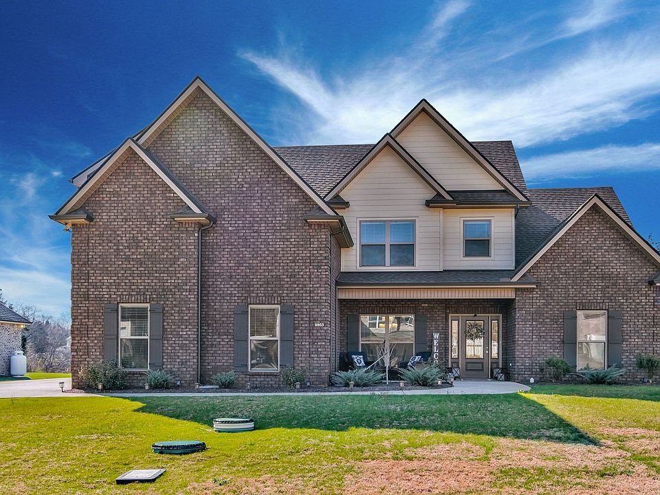 This checks off SO MANY boxes! Gorgeous 2022 built, all brick beauty! Sharp lines and modern color palettes! The abundance of detail small and large is mind-blowing in this price point! Situated on a massive/flat .41 acre tree-lined lot, this could be a 4 bedroom with a bonus, or 5 bedroom: sprawling ceilings greet you as you enter the home, granite on all countertops, glowing/wide luxury plank throughout the common areas, tile in all wet areas, timeless craftsman style trims and moldings throughout, hardwood stairs, recessed lighting, stacked stone fireplace, large kitchen: with built-in stove, microwave, oven, granite counter tops, tile backsplash, custom white shaker cabinets, pantry, bar height dining option, formal dining option, or casual dining option! Primary suite with double depth tray ceiling: elegantly tiled floor and walk-in shower, double vanities, granite counter, large garden tub, and oversized walk-in closet! Upstairs: Centrally located bathroom with tile flooring, tub/shower combo, and double granite vanities! Generously proportioned bedrooms with walk-in closets! Optional bonus/5th bedroom is MASSIVE and has a privacy door and closet! Lush carpets, great storage, and additional storage space in the attic! Outside: Oversized driveway, garage pedestrian door, hardwired gas line for the grill (via propane), fire pit, covered back patio hardwire ready for t.v., and covered front porch! Put her on the list, and make this your first or last stop to truly appreciate the like brand-new condition and details of this home, specifically in this price point! It will absolutely not disappoint! Buyer and buyers agent to verify all pertinent info.