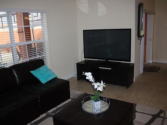 FULLY FURNISHED. EXTENDED POOL DECK. THIS HOUSE OFFERS A WATER VIEW AND A AROUND 150 SF MORE POOL DECK THAN A REGULAR 4/3 TOWNHOUSE. IT IS AN UNIQUE OPPORTUNITY!!! Don''t Miss this Great Deal at Paradise Palms Resort. Beautiful Short-Term Rental Community located just 10 minutes from Disney and US-192 attractions, shoppings and restaurants. This Perfect Vacation Home has the most popular floor-plan Sabal Palm with desirable extended pool deck with pond view. Flat Screen TVs in every room. Stainless steel appliances, granite counter tops, Window Treatments. Resort offers the best amenities in town: 9000 Clubhouse with a 50 seats movie theater, fitness center, sauna, game room, arcade games, huge swimming pool with waterfall, grotto and pool slide. 2 SPAs. Water pad,.Tiki Bar, Business Center, Convenience Store , Basketball ,Tennis and Sand Volley Courts, 24 Hour manned security gate. . MOTIVATED SELLER!!!!! Don''t lose this great opportunity!!!