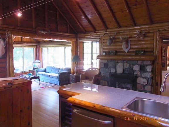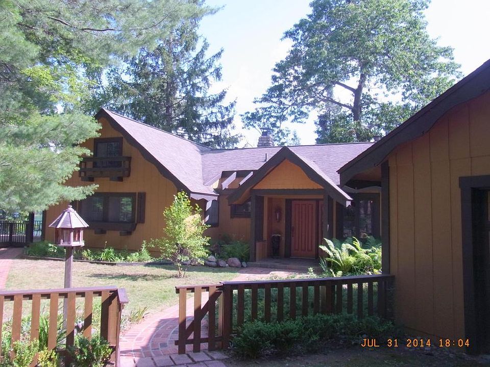 Beautifully rustic log cabin with an addition of a master suite, living room and office. Enjoy this year round lakefront home on all sport lake on 3 lots 2 lakefront (an adjacent 100 ft. vacant parcel) and one across the road. One of a kind home on one of a kind setting. All sport lake is deep and great for fishing. The veiws are spectacular. Most of the home has been updated over the last couple of years - 40 yr dimensional shingles, well, paint, kitchen, a bath added, floor covering (bamboo & carpet), fixtures, water heaters, kitchen appliances (2 fridges). A pontoon, fishing boat & propane