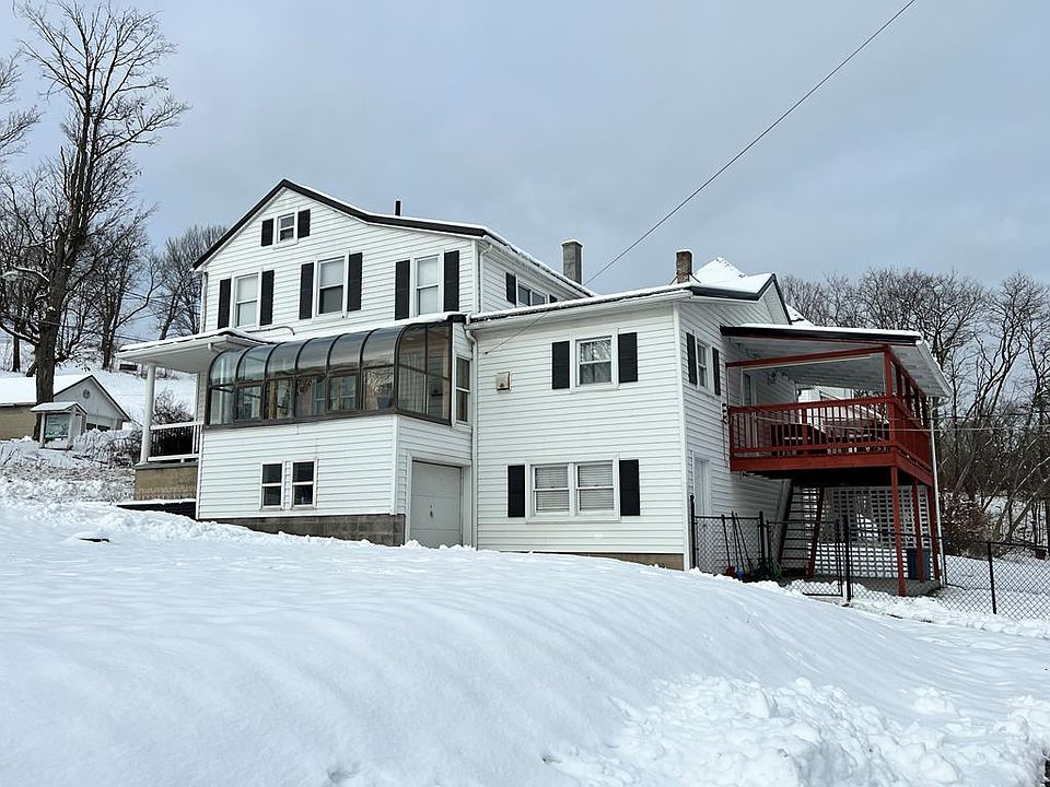 Liberty, PA - 4 Bedroom/2.5 Bath - Ready for a home with space & original character but still featuring modern updates? This property has a Primary Bedrm & En Suite with incl'd Laundry on the 1st level with 3 add'l large bedrooms & Full Renovated Bath on the 2nd level. Space is what this home is about! Living Rm, Family Rm, Large Kitchen with Dining Rm & don't miss the stunning, heated Glass Sunroom off the Dining Area. All the spaces have newer flooring & the kitchen features Stainless Steel Appliances. The list does not stop there... Full Walkout Basement under the Covered Upper Deck with an attached small Garage leads out back to a Fenced Yard & Detached 6 car, 2-story Garage with the Paved Driveway. Gas Forced Air Heating system installed in 2018 & other utilities are electric. Public Sewer & drilled water well. The original character in this home was left intact during the renovations including Wooden French Doors & Amazing Hardware. It is one of the nicest homes you will see