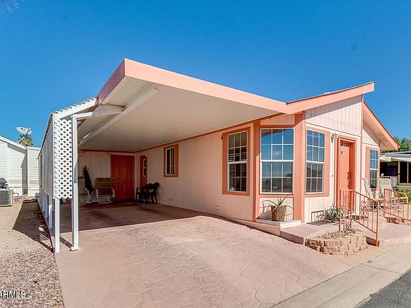 This is a really cute home in a great area of the community, sitting across from a greenbelt. Private and quiet area. Two bedroom two bath home. Fresh, clean and ready for new owners. . Finished storage area, dry walled, carpeted with A/C. . Bright and light kitchen with skylight. Within walking distance to all the community offers. Secure gated entry with private security. This community has it all! Amenities include Baseball field, pickle ball. tennis, newly remodeled pools and spas, BBQ areas, Shuffleboards Rec center with workout room, clubs, crafts, computer room and laundry facilities. Putt putt pad. Dog friendly with multiple walking areas and dog park. Very friendly and active community! See this one soon!