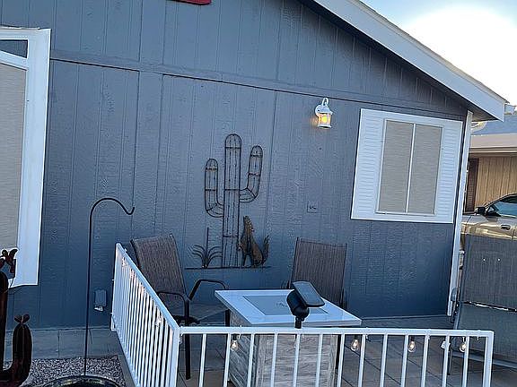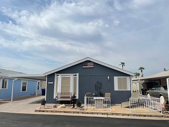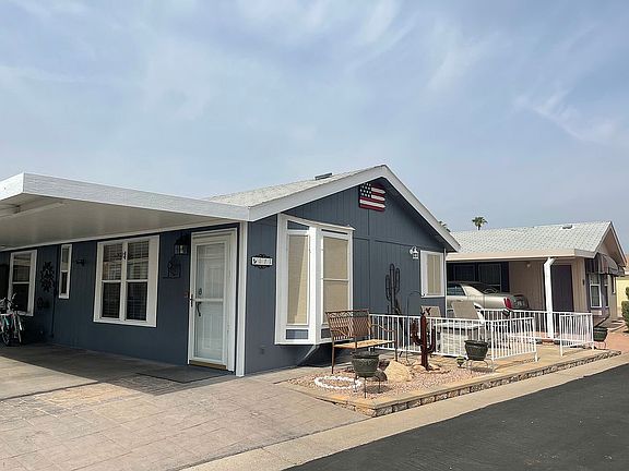 Immaculate 2 bed 2 bath turn-key home! Fully furnished, this gorgeous home features an open floor plan, hardwood flooring throughout, vaulted ceilings, recessed lighting, spacious bathroom w/ step- in shower. Full washer/ dryer in laundry area. Entertaining is a breeze in the island kitchen with modern lighting, brand new oven, and all housewares. Enjoy outdoor living on paved front patio by the fire pit, or take in a game of cards beneath the carport fan. Set in the heart of a beautiful 55+ active adult community. Call for a private showing to make this amazing home yours!