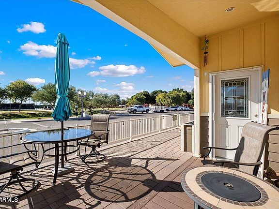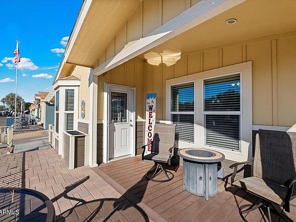 Experience the epitome of resort living with this property's prime location, just steps away from the vibrant community center, competitive pickleball courts, and refreshing pools. Spanning just under 1400 square feet, this home delights with its large open floor plan, exuding an airy and welcoming ambiance that's perfect for entertaining or relaxing. appliances add a modern touch to your culinary adventures, while the expansive patio invites you to enjoy Arizona's stunning sunsets. An additional 10x5 storage shed provides ample space for your belongings.